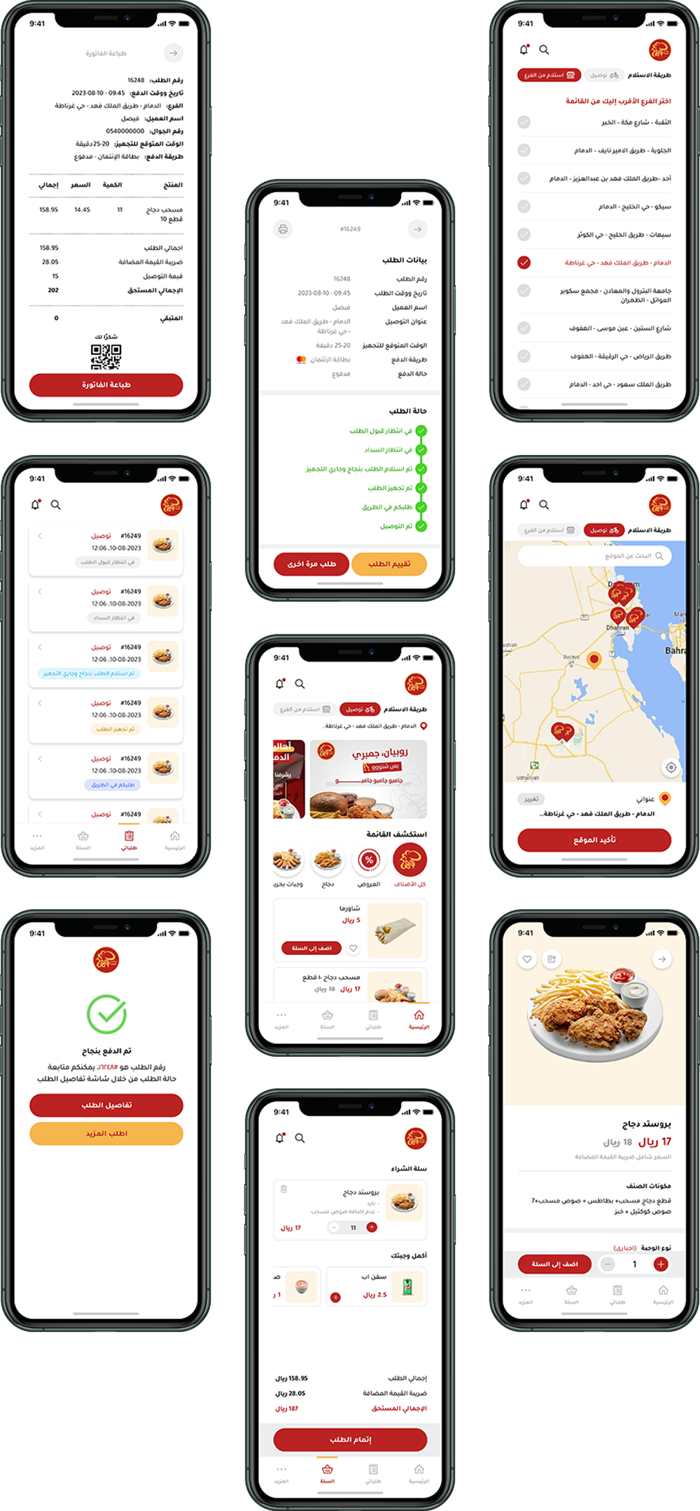Kufa Foods Company is considered one of the best companies that provide broasted (fried chicken) product in the Kingdom of Saudi Arabia. We have more than 10 branches. We have developed a mobile application that makes it easier for customers to order their favorite meals, whether for home delivery or pick-up from the branch, without the hassle of waiting, in addition to many wonderful benefits.
